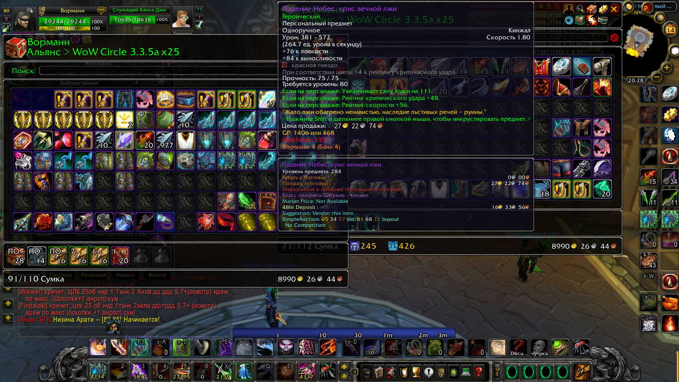 Чтобы не скринить каждую шмотку есть аддон InspectEquip, который показывает рядом с окошком персонажа список всего одетого шмота))) Просто упрощаю тебе жизнь, не подумай плохого)))