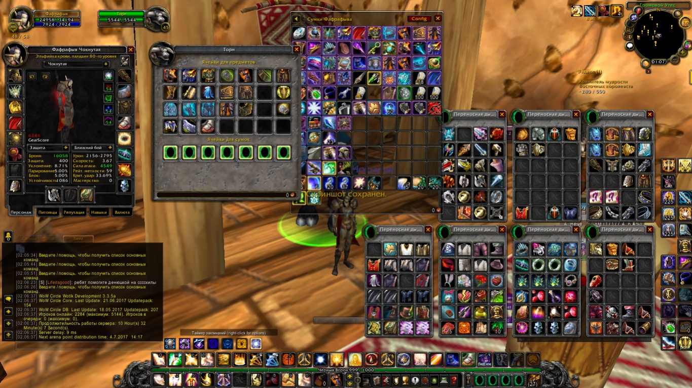 5. 20к в саура дает, есть Сульфурас и много другого шмота на транс,20+ званий, Непобедимый, феникс и еще 9 страниц питомцев и 3 страницы спутников, и многое другое.