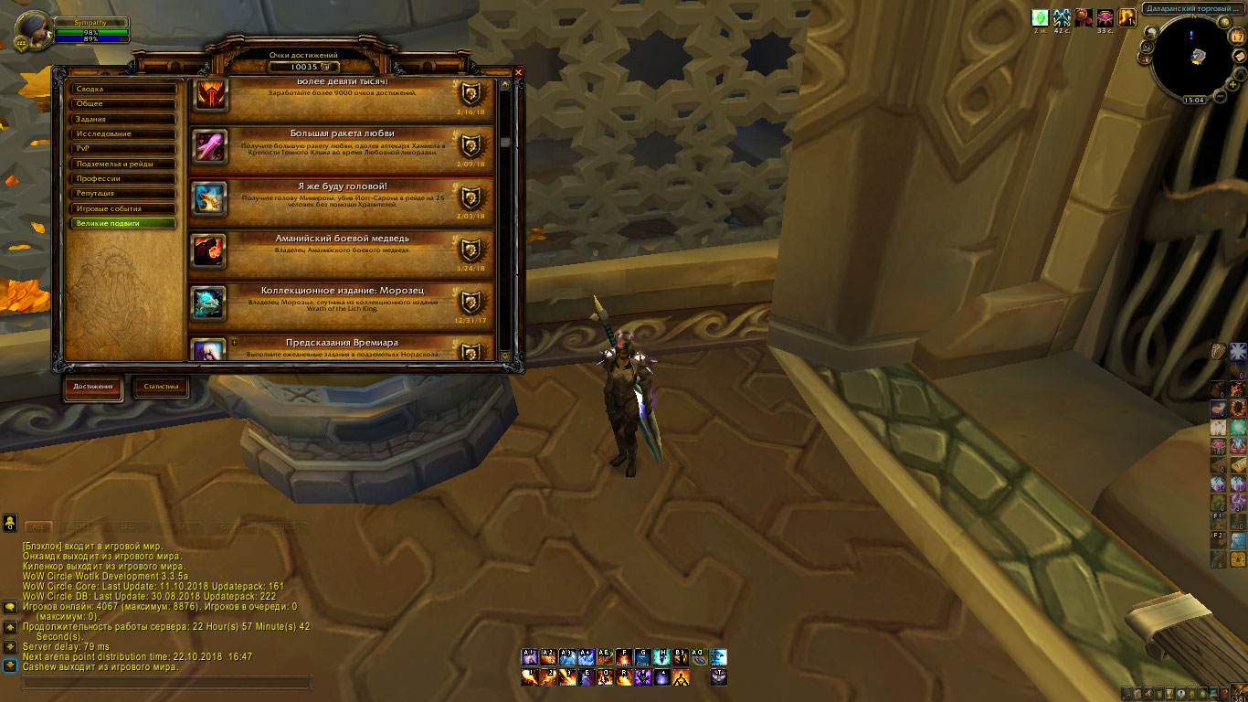 5. Маг так-то не плохой, 36 званий, 10к ачив поинтов,10 страниц маунтов, 8 страниц петов, есть чутка трансмута, на скринах все видно
