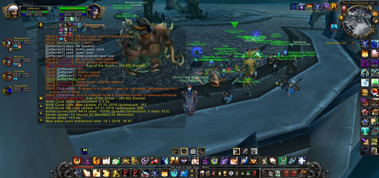 4. Был в рейде Цлк, все гуд было, но как метку не успел вынести на Синдре, ибо говорил с мамой по телефону, при чем это был первый трай за весь рейд и проблем я не вызывал, один уникум, да гений, решил, что он отец мой и начал писать такое, за что я и ЛЮБОЙ другой сын, рот бы ему поправил:) Короче на скринах столько гадости и д***ма в выражениях, что если его не забанят, то скорее всего - это нормально вести себя так! Всем добра, адм привет:)