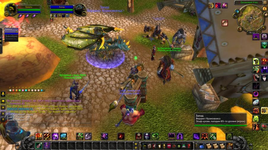 Тема такая. Стоял как то в громовом утесе. Наблюдал за речью Модера - ник Запад. Тот хвастался своим новым аддоном который палит смену вещей и своей афигенностью ну и решил подколоть. А то малясь зазнался человек. Ну мало ли малой еще? Подхожу к перековщику значит возле которого он сидел. По мышке смотрю досегаемость до перековщика. Делаю самое близкое расстояние до серого курсора и просто меняю пухи ). Хотя багать так и не научился к сожалению... Получаю заморозку ) что самое интересное ) ГМ без просмотра статов персонажа и даже мельчайших доказательств дает мут на 9 часов ну тогда меня взяло по полной. Зашел варлоком сделал так же тока уже со скринами ) за что опять же получил мут и бан. Уважаемая администрация. В связи с вашей занятостью и забытостью вами сервера рекомендую нанять ""ОПЫТНЫХ" людей на такие должности которые будут ""Внимательнее" и без мании величия. Прошу разбанить перса Чумазоид и Камаль в связи с неопытностью ГМ состава. Кто читает просто попробуйте сам )
