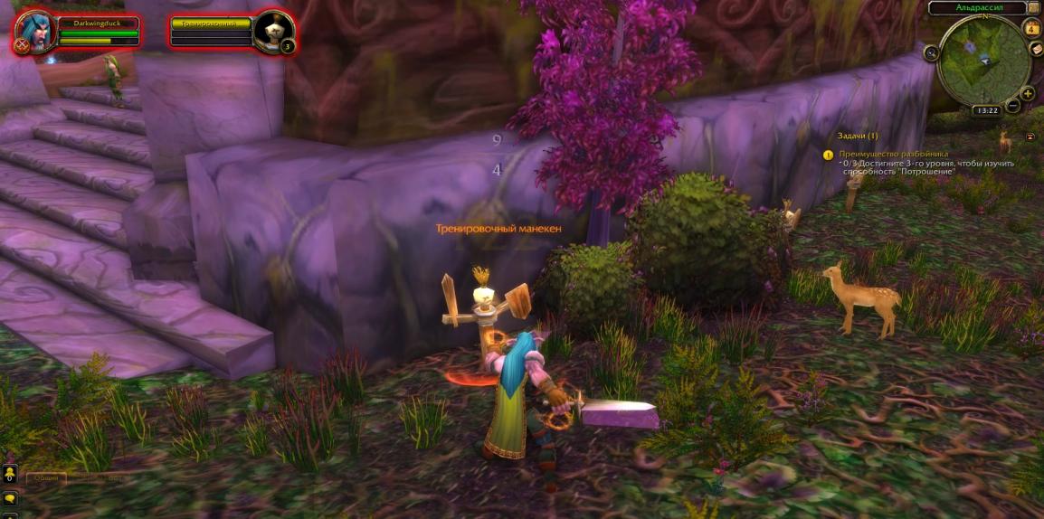 3) "Достигните 3-го уровня и обучитесь "Потрошению". Найдите тренировочный манекен к юго-востоку от Альдрассила и проведите на нем прием потрошения 3 раза."
