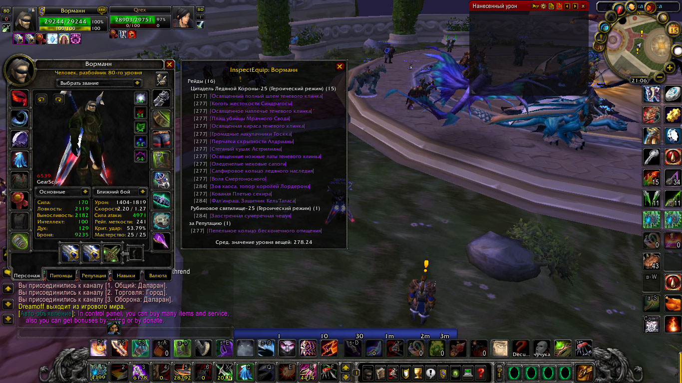 Чтобы не скринить каждую шмотку есть аддон InspectEquip, который показывает рядом с окошком персонажа список всего одетого шмота))) Просто упрощаю тебе жизнь, не подумай плохого)))