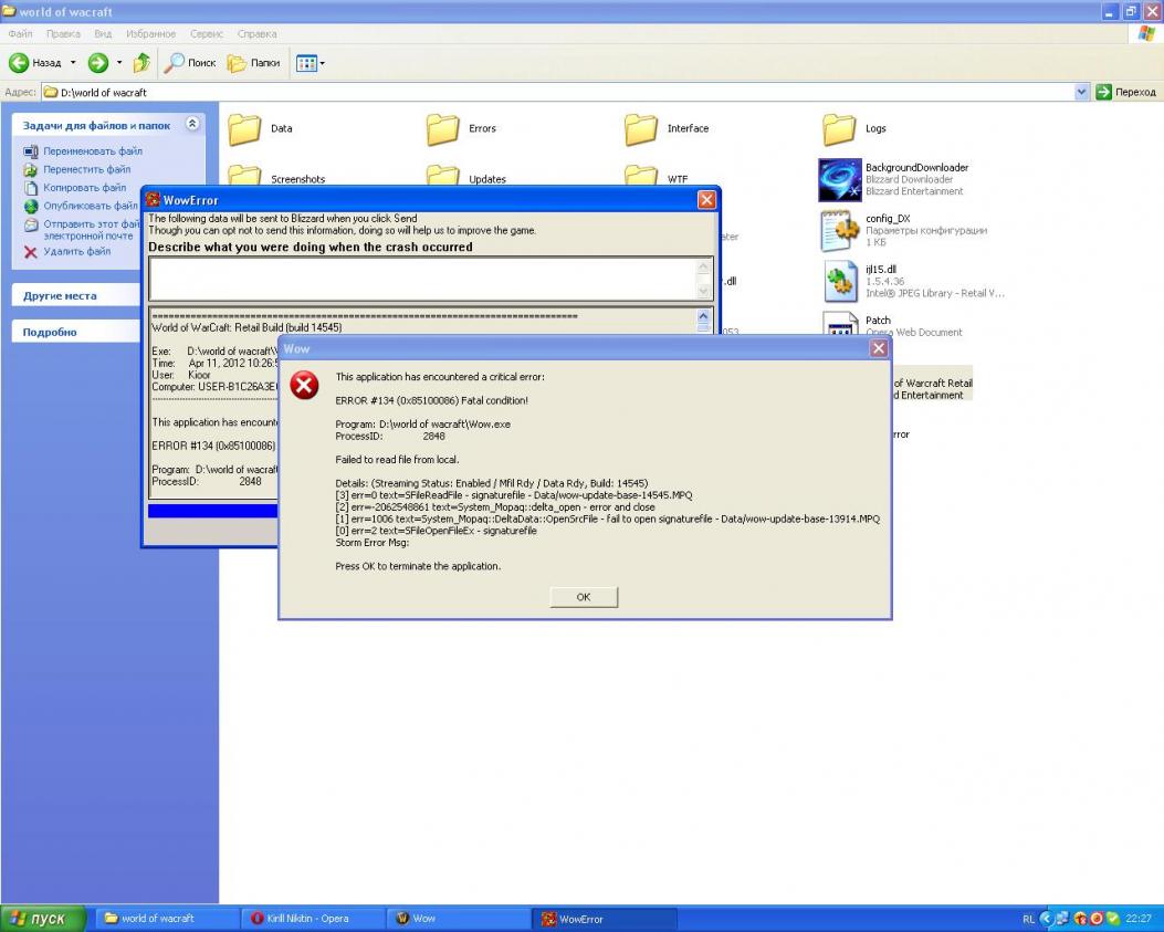 Вчера поставил клиент 4.2.2, скачал ярлык сервера, начал играть,через пару часов закрыл вов, решил о5 пойти поиграть захожу а тут жопа.