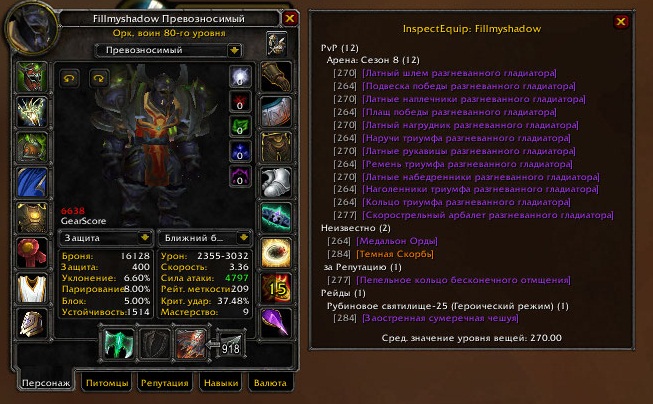 1. Никнейм - Fillmyshadow | Воин | Орда | Армс ПвП - 6839 | Фури ПвЕ - 6744 | Прот ПвЕ - 6319