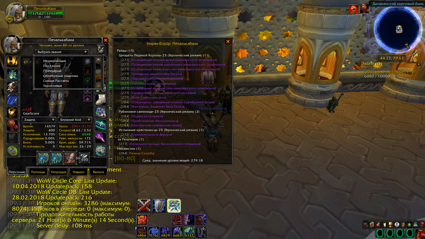 5 Фул бисс фури.прот.в армсе пве 3/5 а8 изи рейт апать и взять грудак варом.есть наручи с рс 10 хм на арп,плащ агила,череп хм.куча званий,маунтов,трансмут! Налетай, в игре покажу!