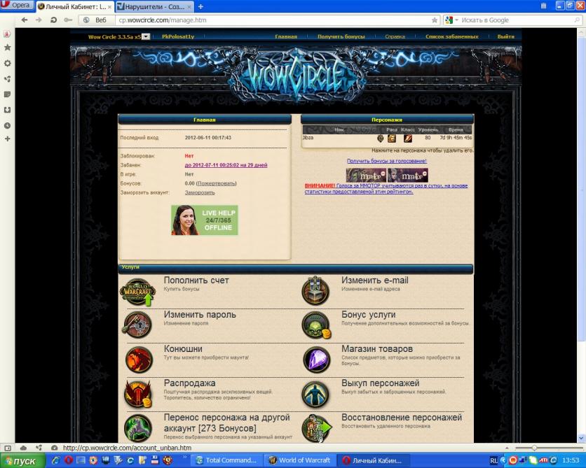 Здравствуйте уважаемая администрация. Мой аккаунт pkpolosat1y с единственным персом Jibza забанили на 30 дней по непонятной мне причине. Меня даже в игре не было когда бан случился. Прошу разбанить меня.