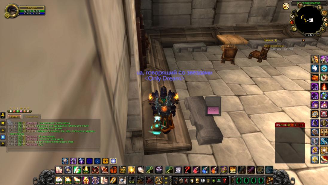 В один прекрасный день слышу жестокие Обвинения от Олега(Lodestar), мол я попросту пользуясь званиеем Банкир, краду Древнейший саронит из банка гильдии, но в замен ничего не ложу(Фласки/Камни/Реагенты/Шмот). Но парень наверно не обладал на тот момент СКИЛОМ ''Журнал Гильдии'', я его обучил этому скилу, и парень почиму-то начал тупо отмазыватса ;(.