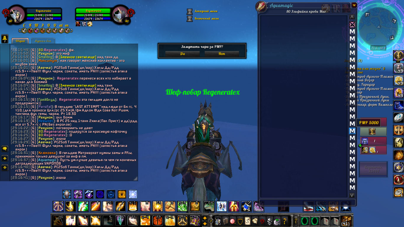 Добрый день(утро, вечер). Вечером 24.10 персонажу Aquamagic прилетел мут на 5000минут от Regeneratex причина: РМР. Вопрос: в чем же уважаемый модератор рассмотрел РМР?
