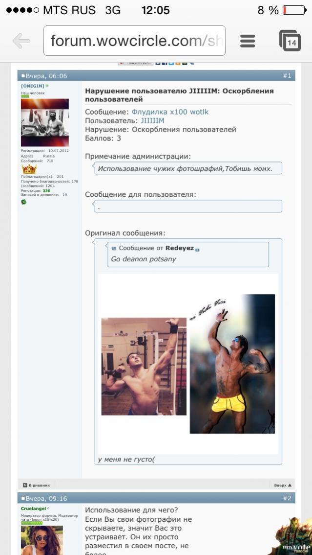 При этом она выдает бан другим участникам форума за использования чужих фотографий.