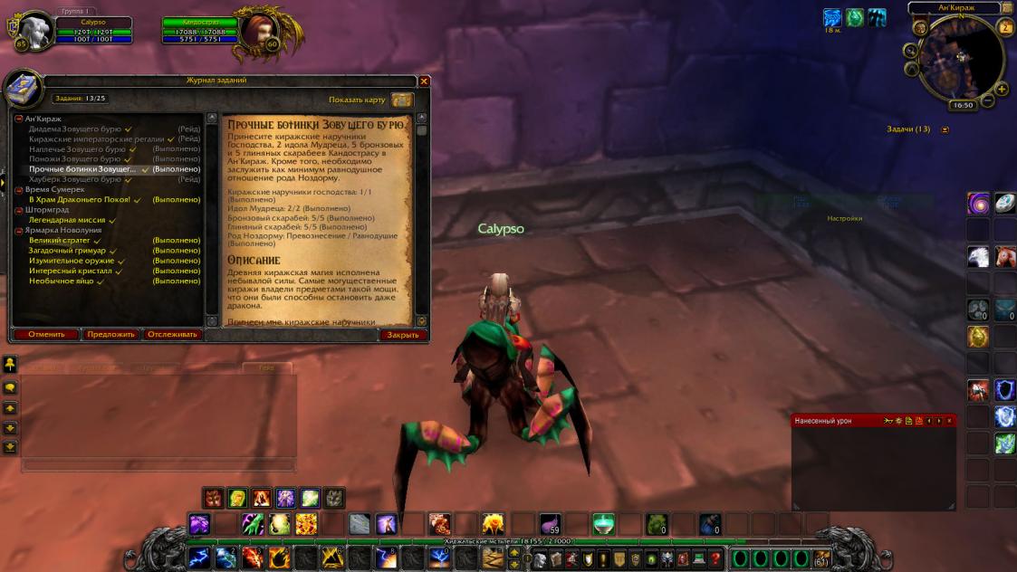 Суть проблемы в том, что квест берущийся в Рейде Анкираж на подобии [Прочные ботинки Зовущего бурю] и т.д. не сдаётся при наличии квестовых итемов.WoWScrnShot_060215_155022.jpgWoWScrnShot_060215_155047.jpg