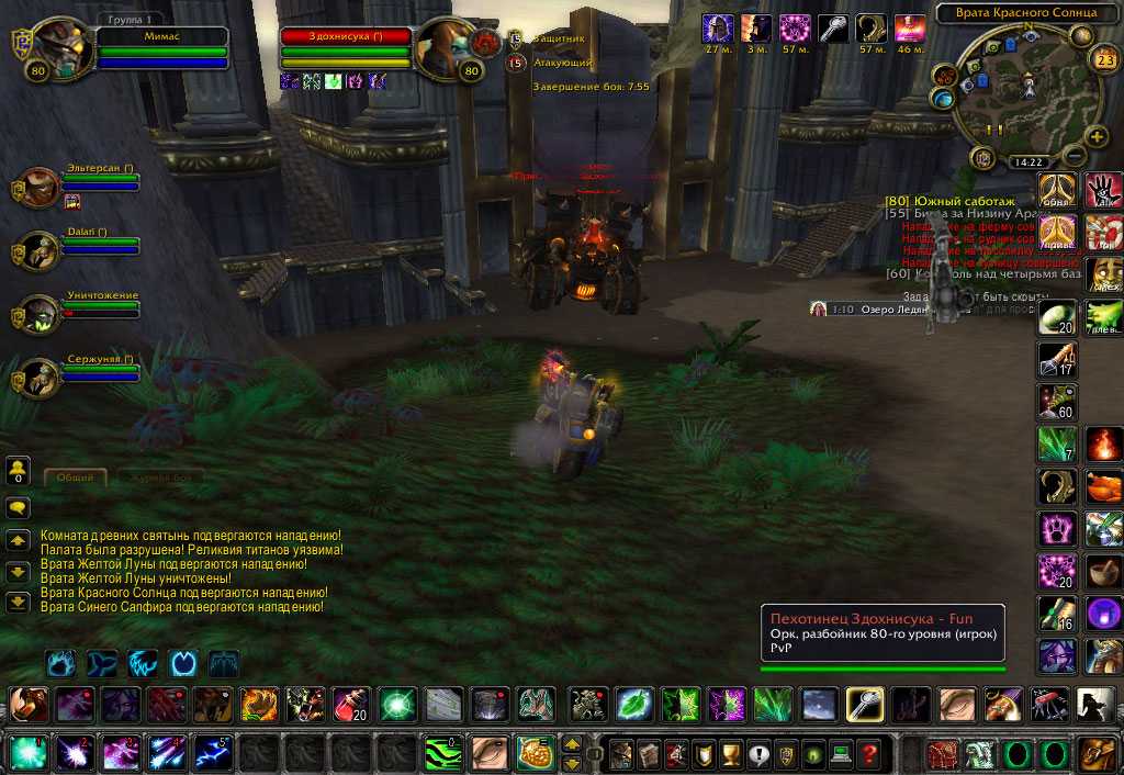 3) На БГ "Берег древних" этот персонаж, сел на разрушитель и перелетев через все ворота разбил комнату древних святынь, затем разбил желтые ворота, затем пролетел к красным, это все видно в чате. Все это было проделано за 2 минуты 5 секунд (завершение боя: 7:55).