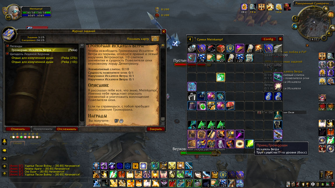Делая ачиву на http://wowroad.info/?item=19019 с босса не было лута (уже есть тема в баг-трекере). В итоге ни ачивы, ни ингредиентов для выполнения квеста.. очень долго фармил 100 арканитовых слитков, а тут такое.