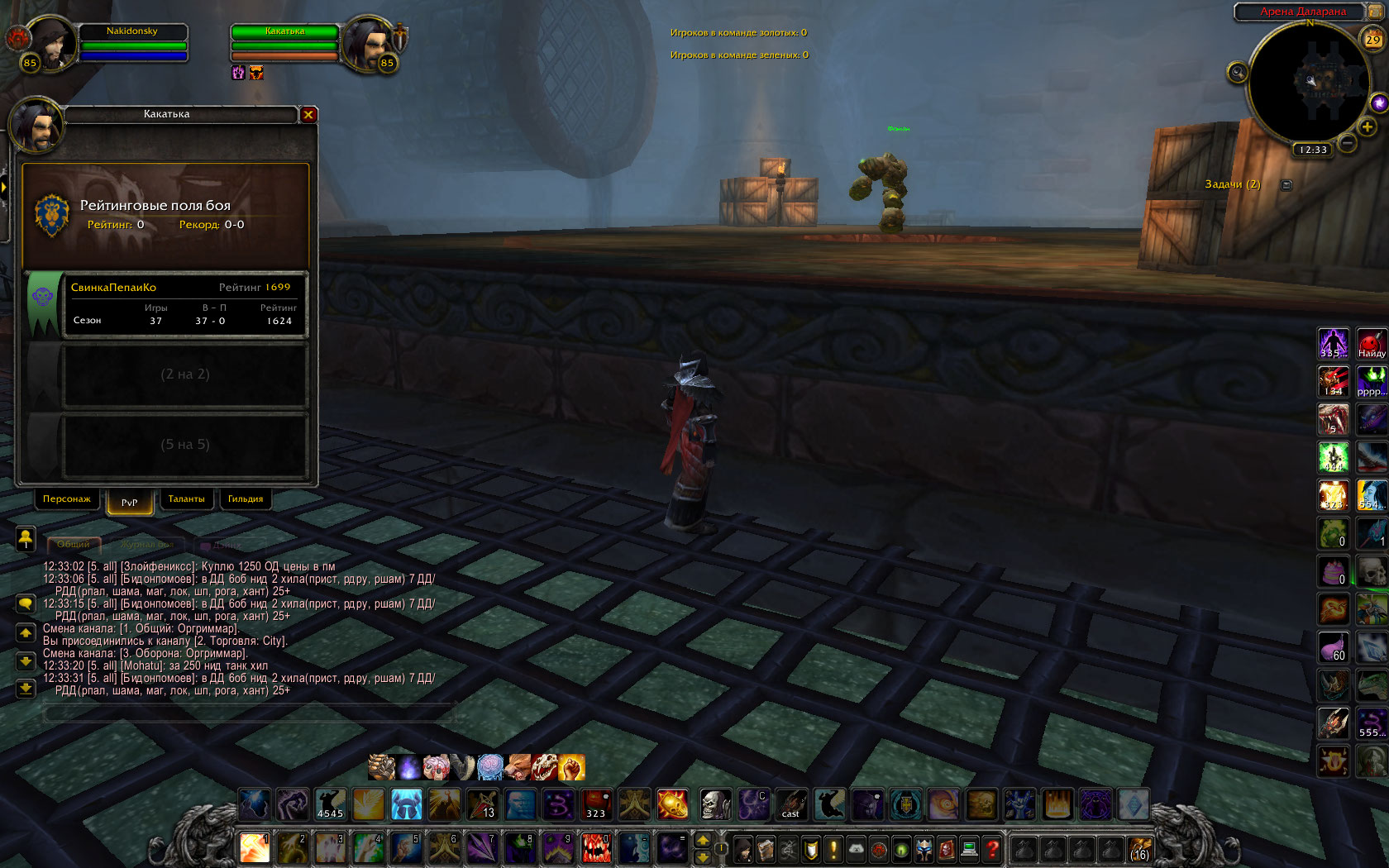 Только что смотрел арену. Пареньки решили не хило так посливать арену. Так как комп гавно, видео даже не пытался заснять. Ники "Громакошка, Отдамкотят, Какатька, Ихсаннх.