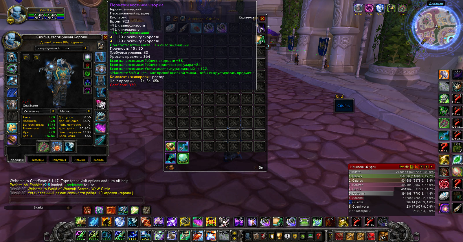 Этот шаман способен соло отхилить фул цлк 10об, и практически фул 10 гер. в 25ках стабильно первые места по хпс;)