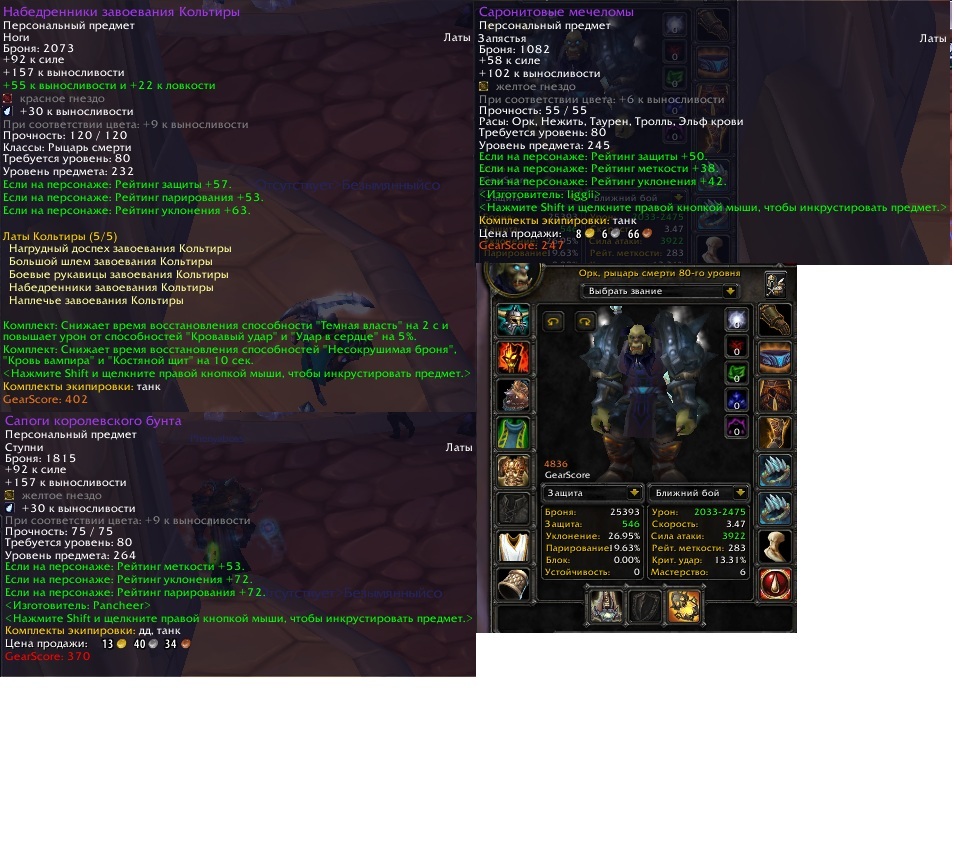 привет,капа мастерства нет, одевался по гайду http://forum.wowcircle.com/showthread.php?t=196199 гс 4.7, собрал т9 полностью 232, кольца бое с цлк и за дружелюбие с пепельным союзом, спина и шея синька,трини палец ика и синее жертвоприношение, никуда не берут, как дальше быть?