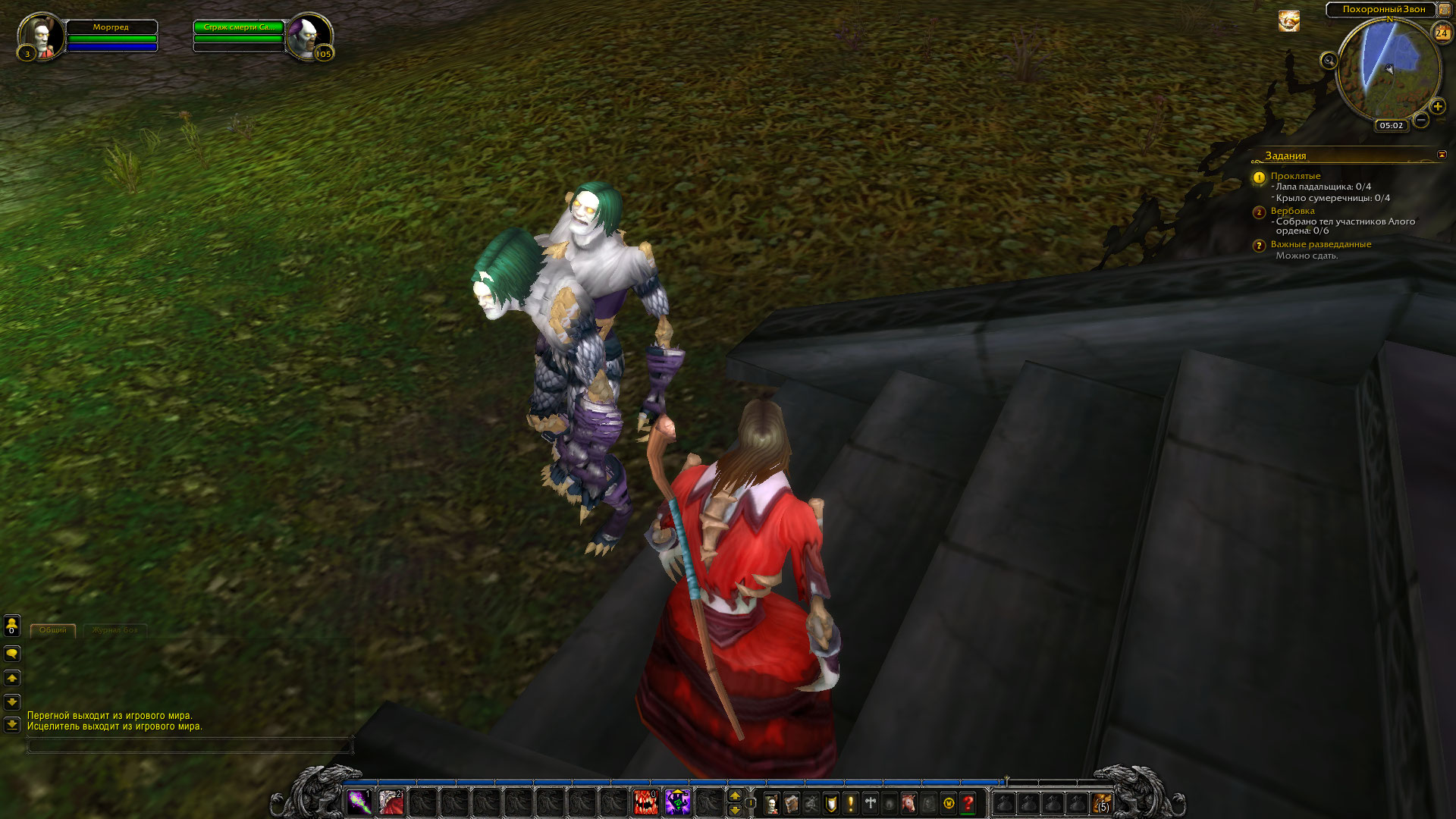 9. http://ru.wowhead.com/npc=1740 он мне выдал квест, нужно ему принести валяющиеся недалеко 6 тел участников Алого ордена, а взаимодействовать с ними, как это должно быть, нельзя.