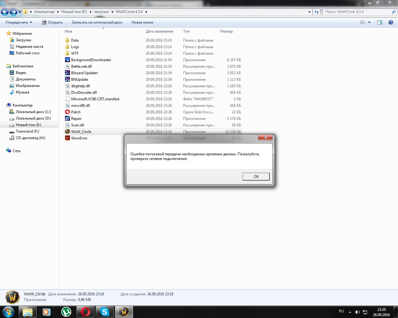 Здравствуйте, у меня проблема. Пишет : Ошибка потоковой передачи необходимых архивных данных. Пожалуйста, проверьте своё локальное подключение.