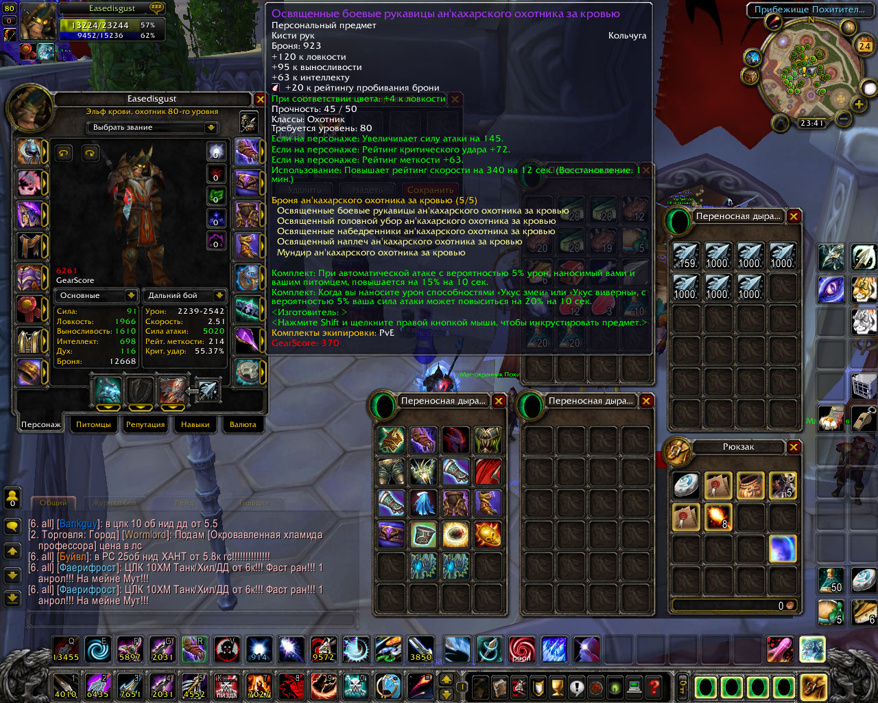1. Easedisgust, орда, эльф крови, пвп 6109, пве 6261.