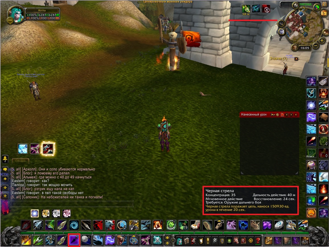 7.4.На скрине №4. Урон от черной стрелы опять же с настоем весенних ветров (1000 ловкости) равен 150930 ед. урона