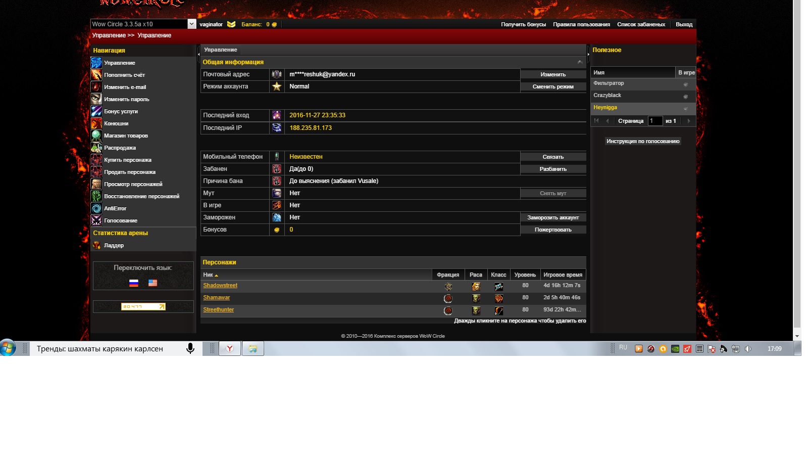 .ban acc vaginator 2d unban(forum)- бан на два дня(снять нельзя), чтобы вы успели сделать все то что написано ниже, и Ваш аккаунт снова не попал к злоумышленнику.