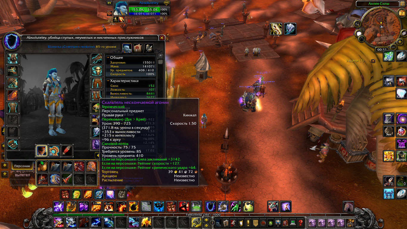 1. Absoluteley, Шаманка, Орда, ПвЕ Предбис рестор(408) \ Элем 407 \ Энх 406