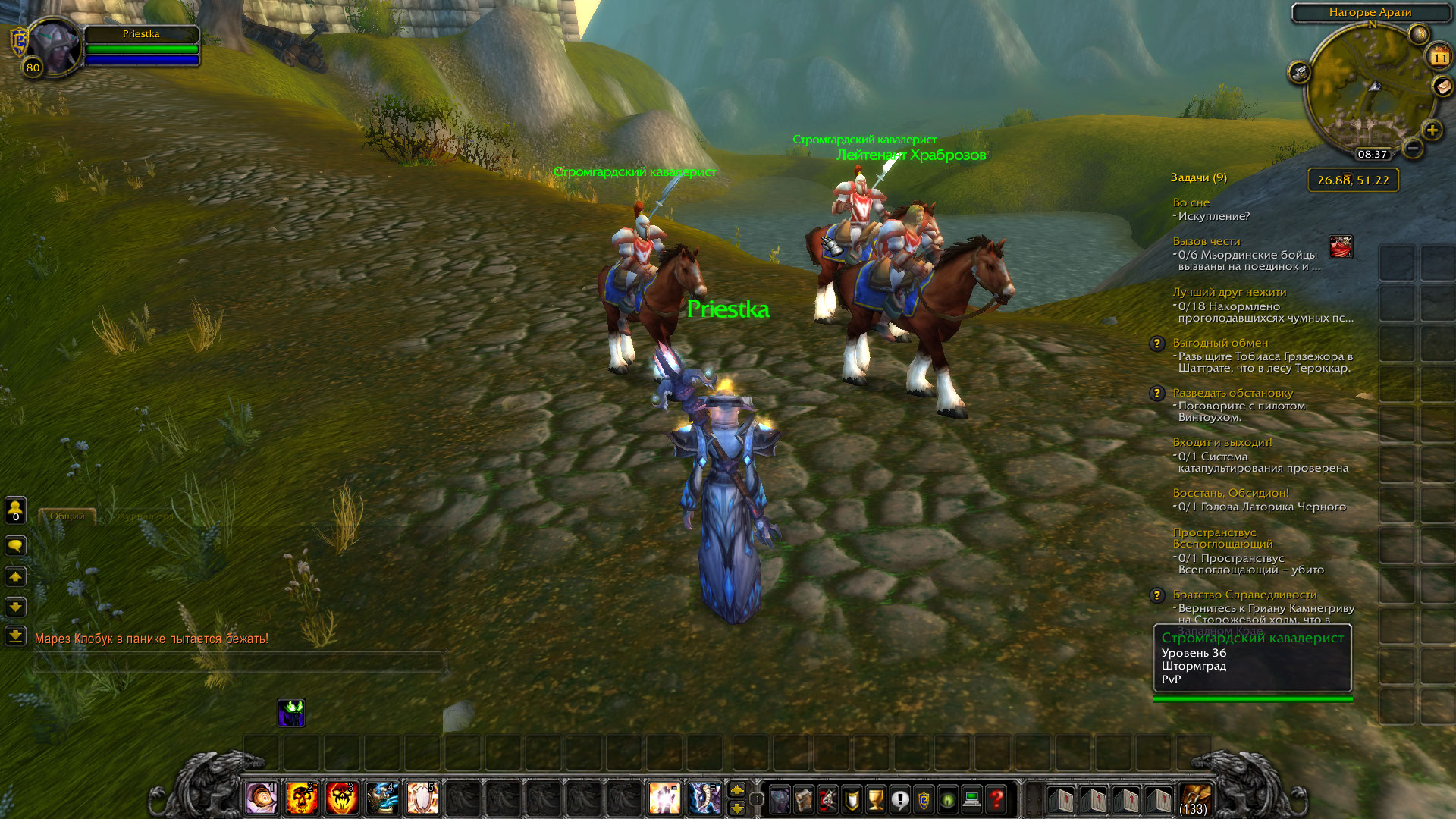 4.Нагорье Арати, непись http://ru.wowhead.com/npc=2612 должен ходить туда сюда по дороге от Усадьбы Дабири до Стромгарда в сопровождении двух мобов.