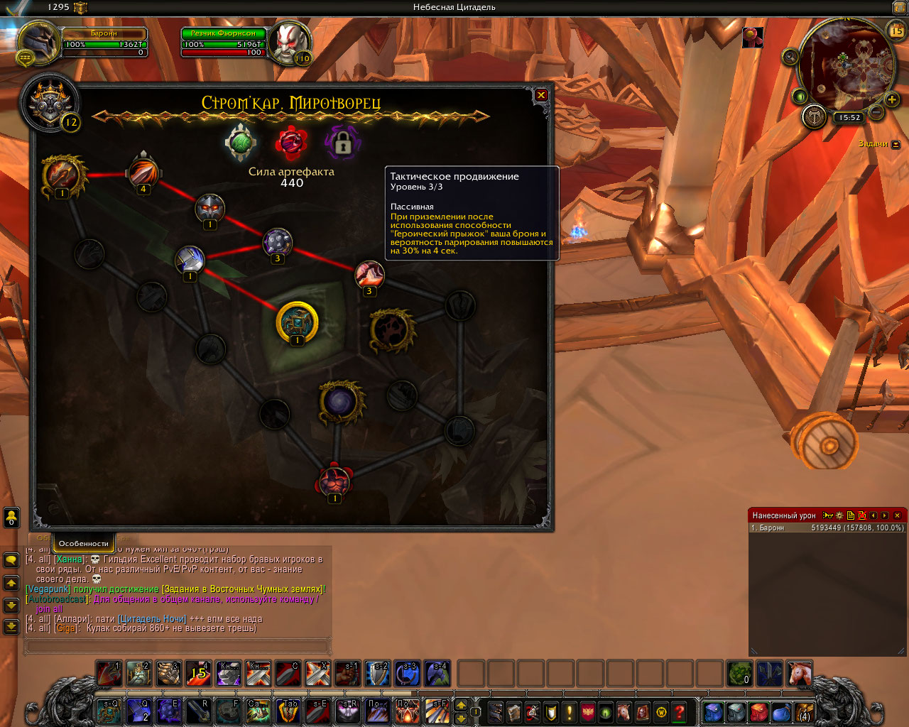 не работает совсем при использовании http://ru.wowhead.com/spell=6544 должно налаживать баф повышающий броню и вераятность парирования персонажа