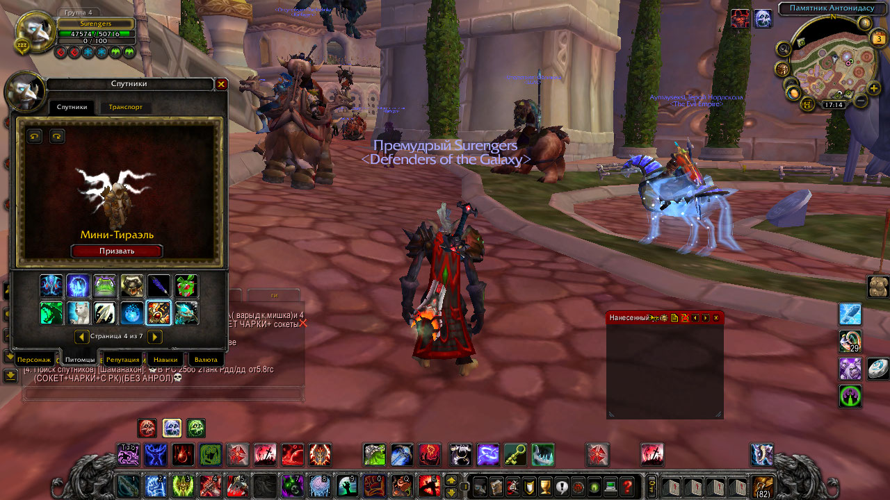 Д)7 страниц спутников!Много доненных,таких как :Мини-Тираэль, Эфириальный продавец душ, Урчаль, Разрушитель XXS-002, Турбоципленок, Пандарен-монах, Морозец, Медвежонок Близард, Конструктобот XS-001, Зерлинг, Воздушный змеедарк и тд...