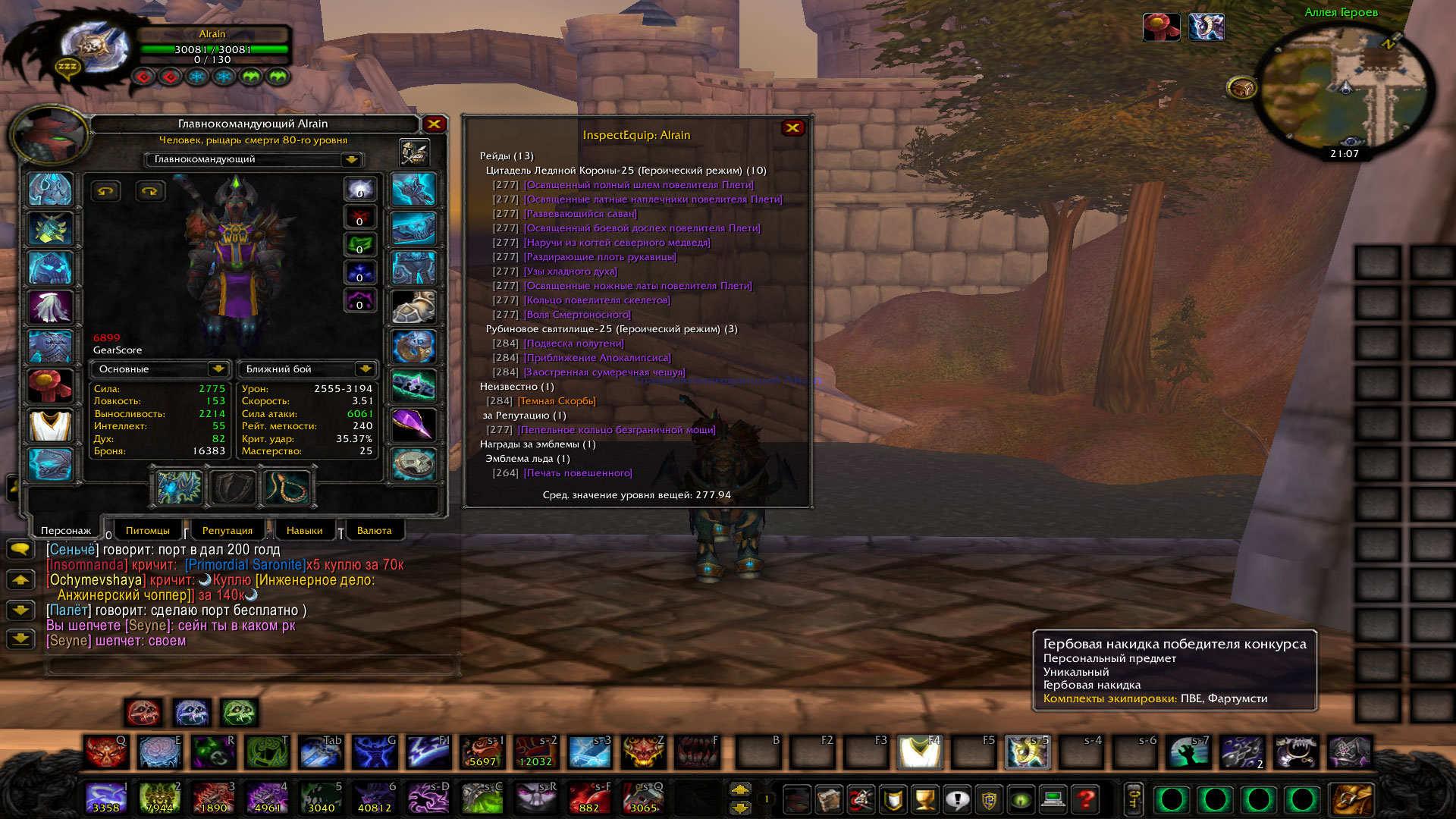 5. Это очень хороший дк как в пве так и пвп, я на нем апал 2437, убивал лича 25 хм, предлогайте цену.