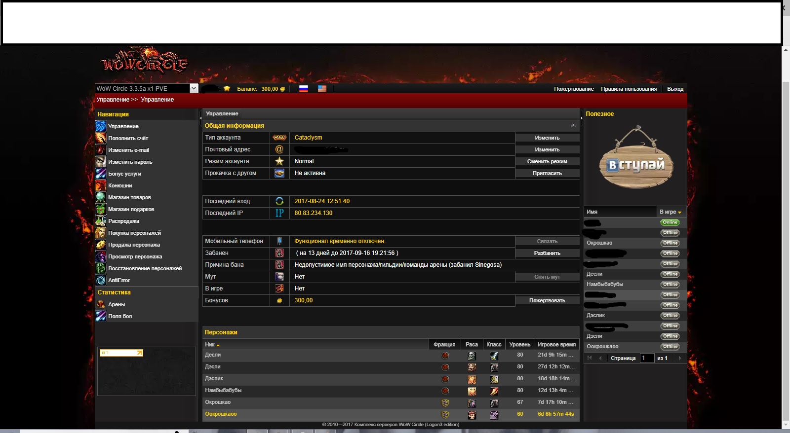 4. Прошу уточнить имя перса за которое назначен бан, (предполагаю что за Намбыбабубы). Для переименования необходимо разблокировать аккаунт.