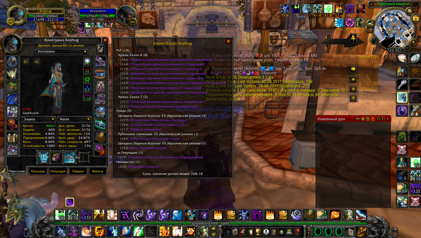 5. фулл а8 дц, 3/5 а8 шп, предбис шп пве, предбис дц пве. Куча маунтов, спутников и званий. 10к ХК. Можно сменить фракцию, расу и ник!