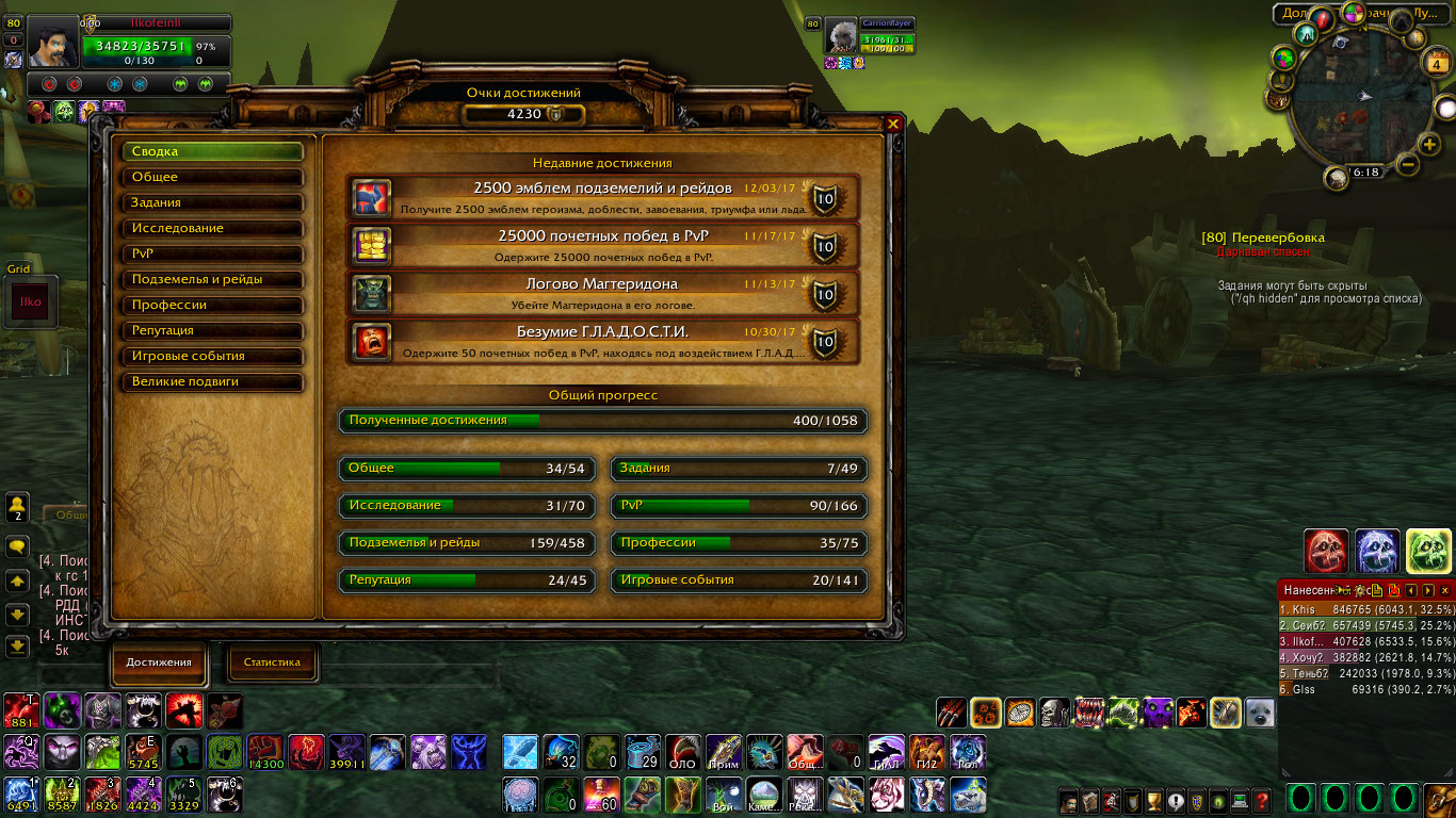 1) Ilkofeinll Альянс Человек Flr 6899(Фул) Фдк(6539 без спина с Ивк) ПвП 5/5 а8 (Адк/Фдк)