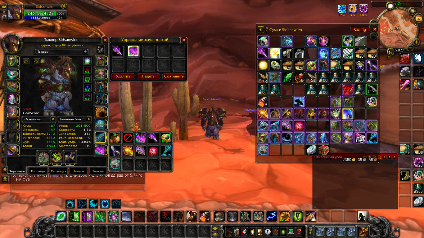 Sidsanwien, таурен, орда, БиС кот, ПредБиС рестор, есть трыньки и шмот на танка, остальное смотрите скрины, могу показать в игре