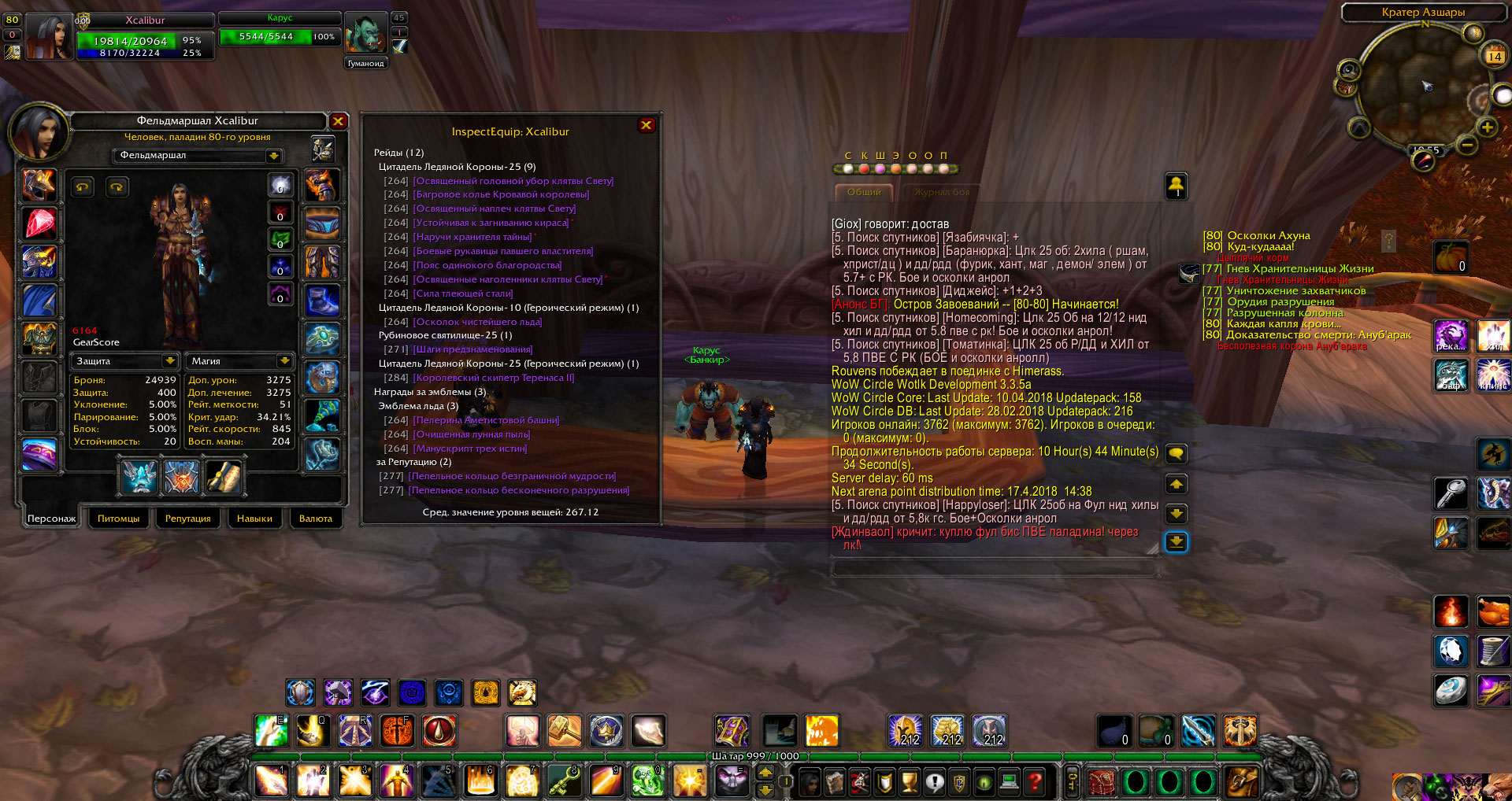 1. ник Xcalibur , Паладин , Альянс , пве 3 спека по 6к гс и два фул а8 спека - холик ретрик