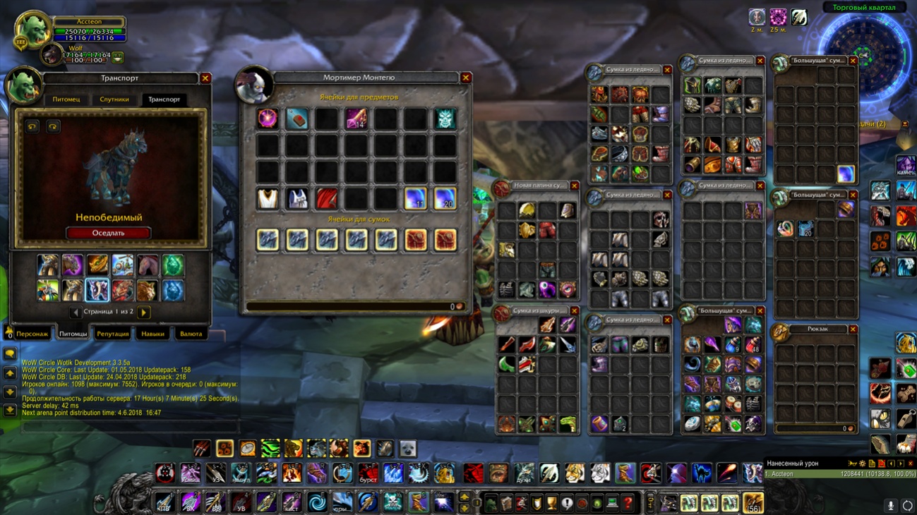 Там очень много транса и нормально ачив, причем транс с бк инстов х3 видов, т1 на шаманский, т2 шаманский и т2 Хантовский, между прочим плечи на последний сет падают с ohf, с ласт босса и процент дропа что-то вроде 0.40%, 2е топ трансов на лук с Иллидана и с Сестер, куча транса оружий, т5 вроде нету только головы.