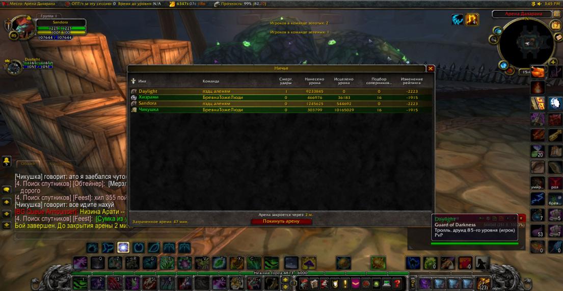 3) Задерживал арену. Хилился, прячась за ящиками. Оскорбление в чат.