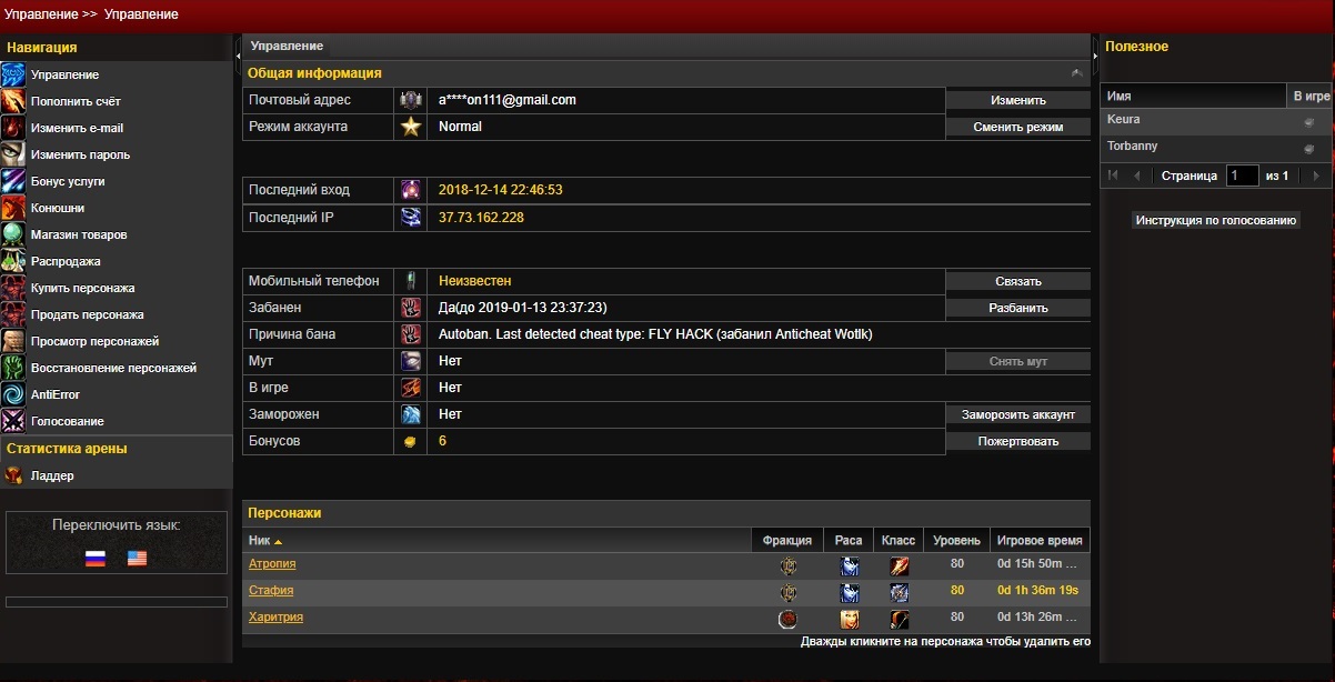 -Autoban. Last detected cheat type: FLY HACK. Заблокировал: Anticheat Wotlk