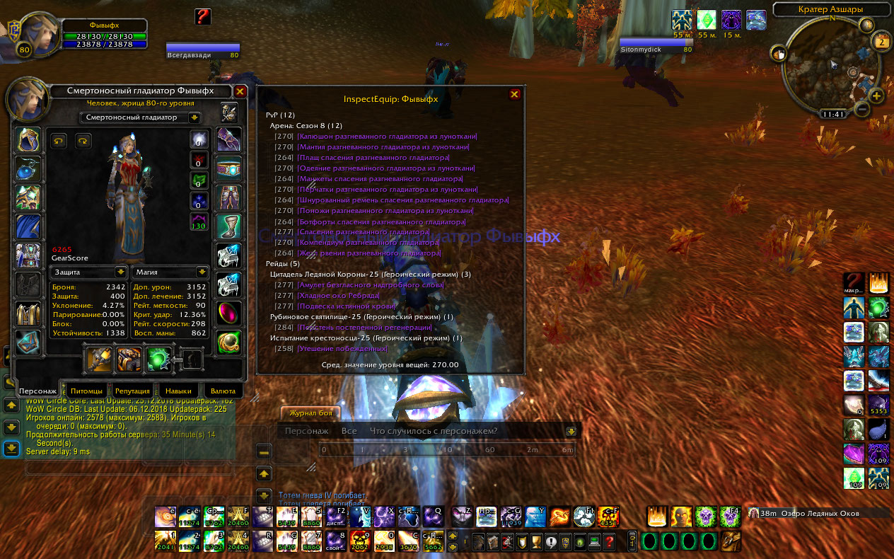 На скриншотах должна быть прописана команда .server info + должен быть аддон Inspect Equip. Исправьте, иначе тема будет удалена.