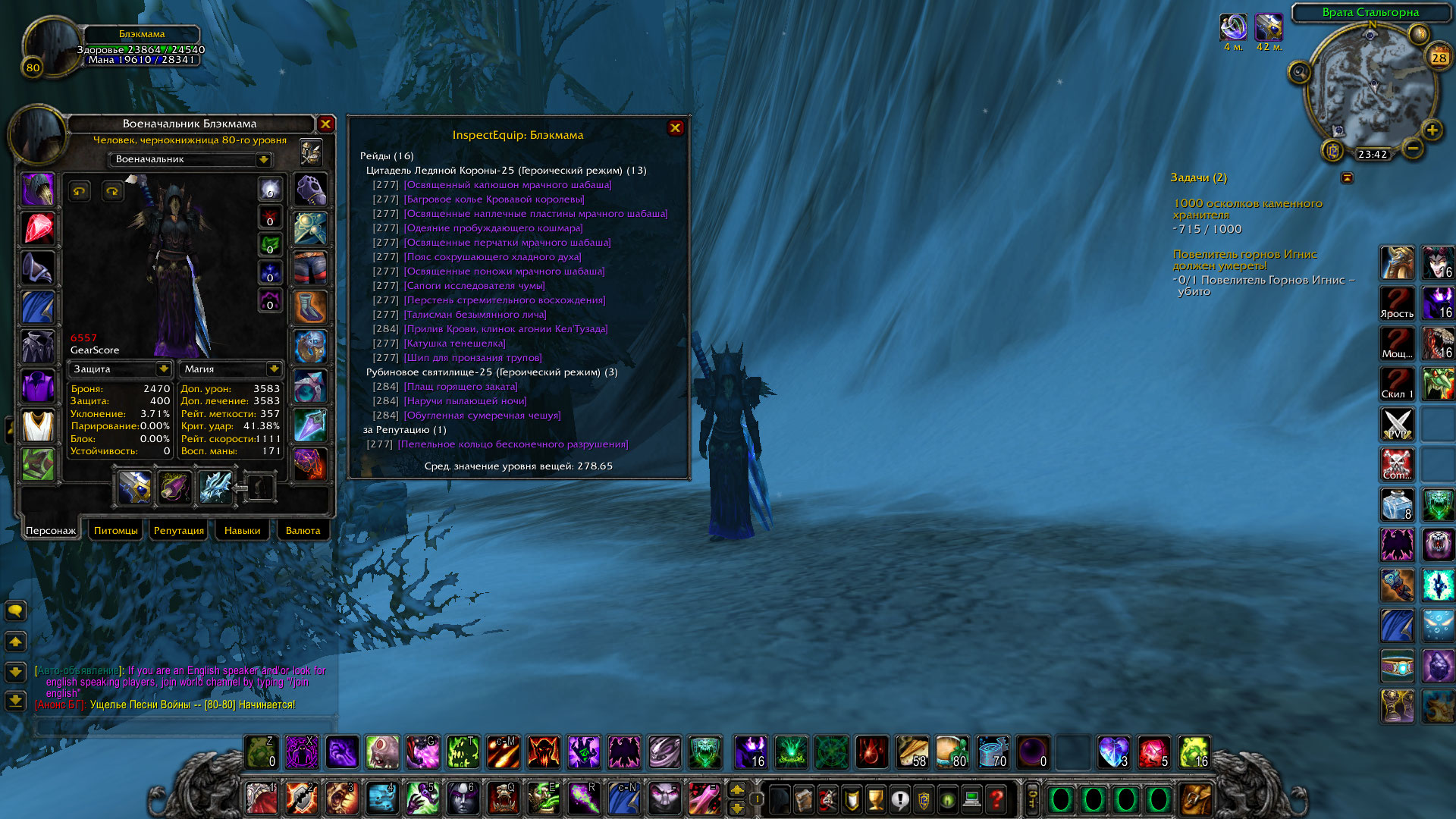 2. Абсолютный бис во всем, фул пве, фул пвп, (фул кастер тринкеты) собран шмот на посланника титанов, 11.2 к ачив ( военачальник, Дочь Альянса, Хранитель Мудрости и т.д ), перс 2010 года, донатные трансы и магаза, 115 маунтов. Вопщем один из самых топовых локом х5, очень редкий.