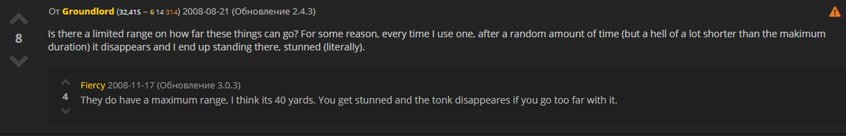 3. На 3.3.5а у танка нет ограничения на дальность использования