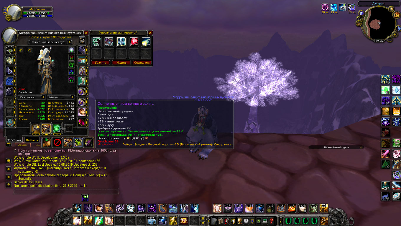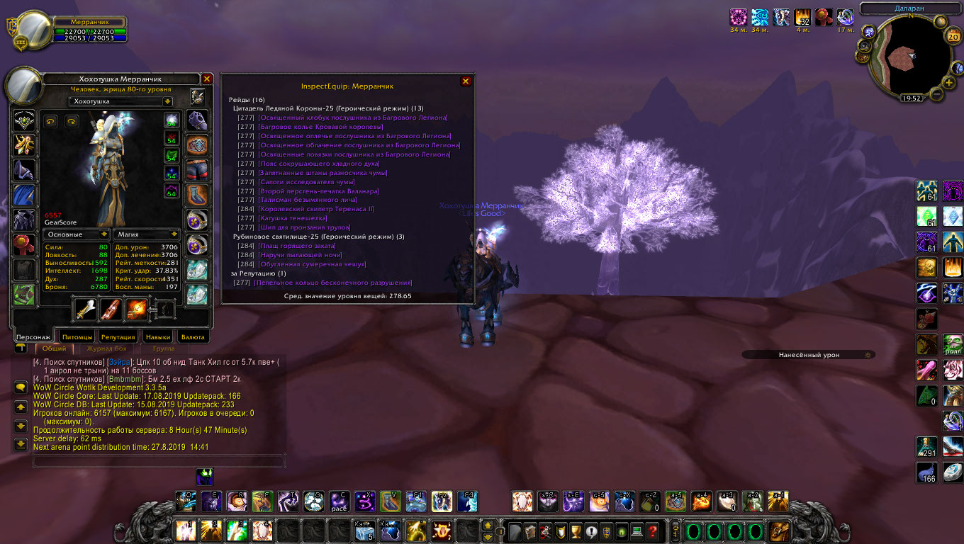 д)Ачива 5к,хк 18к, профы инжа и портняга 450/450,есть много трансмута на пухи,4 сета на шмотки..