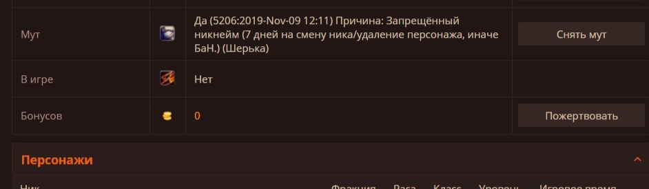 на днях зашёл в игру, увидел что я замучен на 7 дней, зашёл на сайт, решил сменить ник, пишет что я в муте, удалить персонажа не могу по той же причине, выкупил около трёх часов мута, зашёл в игру - время не изменилось, что делать? как избежать бана, если не получается изменить ник\удалить перса?