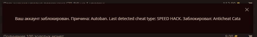 2. Фх (до 2020-01-04 09:53:07) Autoban. Last detected cheat type: SPEED HACK (забанил Anticheat Cata)