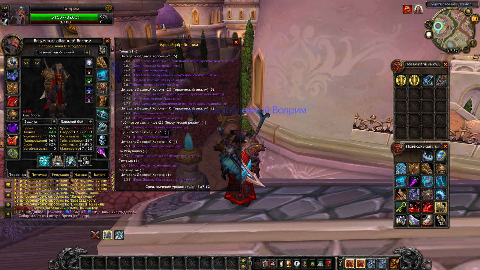 танк 6.4 + шмот на фрост резист, фурику не хватает штанов и плаща, есть чешка и череп гер.