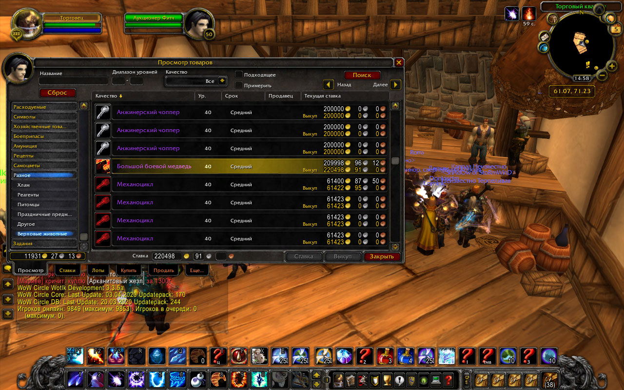 7) Выставить любого из этих маунтов по указанным ценам/попробовать выкупить.