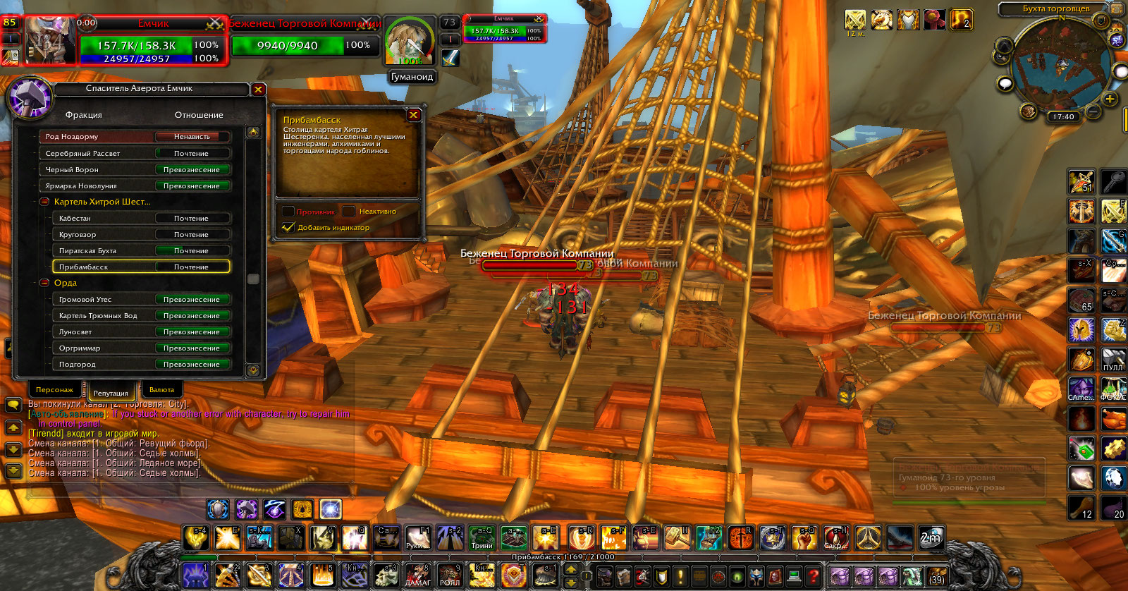 — Танарис (большая территория Пиратов Южного Моря за Пещерами времени - там два сопряженных участка, плюс южная оконечность Танариса, где странные берега - там вроде тоже раньше были пираты, но мало). Самый лучший участок здесь - где верфь с кораблями, вышки и несколько домов. Респ мобов средний, количество - наибольшее. Местами попадаются по 3-4 моба за раз, так что удобно аоешить. Мобы слабые.