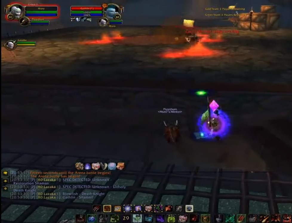 Здесь видно, что когда шаман ставит тотемы, Индикатор угрозы у ханта постепенно меняется с оранжевого на красный, видимо тотем хотел сначала пета атаковать (не факт)