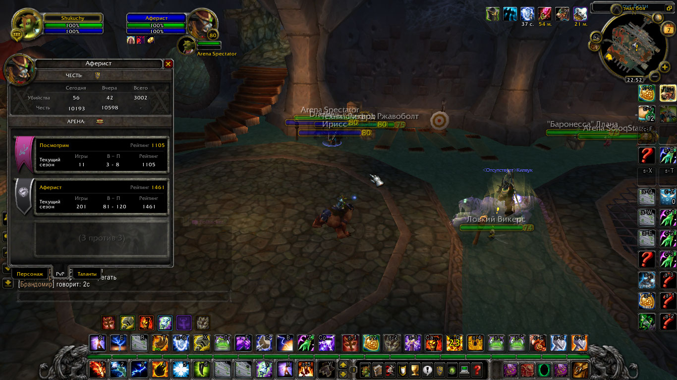 Прошу проверить данного игрока на наличие скриптов. Слишком много подозрительных действий было замечено во время арены против него. Причём не мной одним. Доказательств предоставить не могу, но другие игроки пвп аспекта могут подтвердить мои слова
