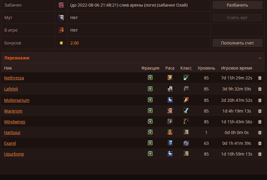 Причина бана: (до 2022-08-06 21:48:21) слив арены (логи) (забанил Озай)
